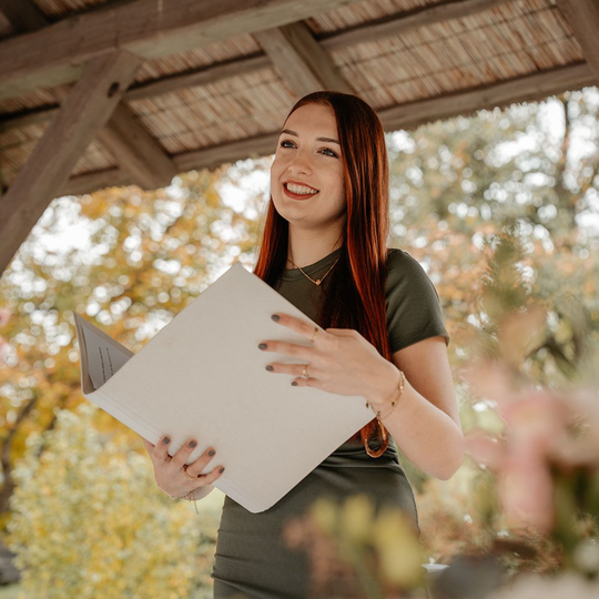 Mein Name ist Amelie und ich bin Rednerin für freie Trauungen, Willkommensfeste und Jubiläumsfeiern. Es ist mir eine Herzensangelegenheit, eure ganz persönliche Geschichte in Worte zu fassen und Emotionen auf authentische Weise in eurer Zeremonie zum Leben zu erwecken. Jede Feier, die wir gemeinsam gestalten, wird individuell und einzigartig - genau wie ihr!